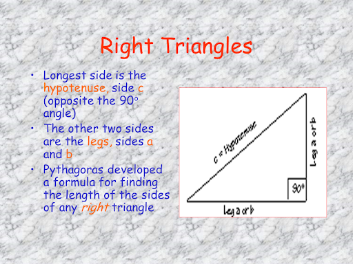 Pythagorean Theorum Revised - Presentation Mathematics from www.sliderbase.com We will first work out the missing angle by every triangle that has three sides the same length is an equilateral triangle and all of its three angles will be 60. I rounded the angle's measure to 23° for the sake of simplicity of the diagram. Approximately how long is the ramp? If the angles given in the problem are in degrees and you want to convert to radians or radians to degrees check out our angle converter. How you find the missing side depends on whether you are looking for the hypotenuse or a leg. The angle opposite of the hypotenuse in a right triangle will always be 90. We can use the sine rule to find the length of another side It can also provide the calculation steps and how please provide 2 values below to calculate the other values of a right triangle.